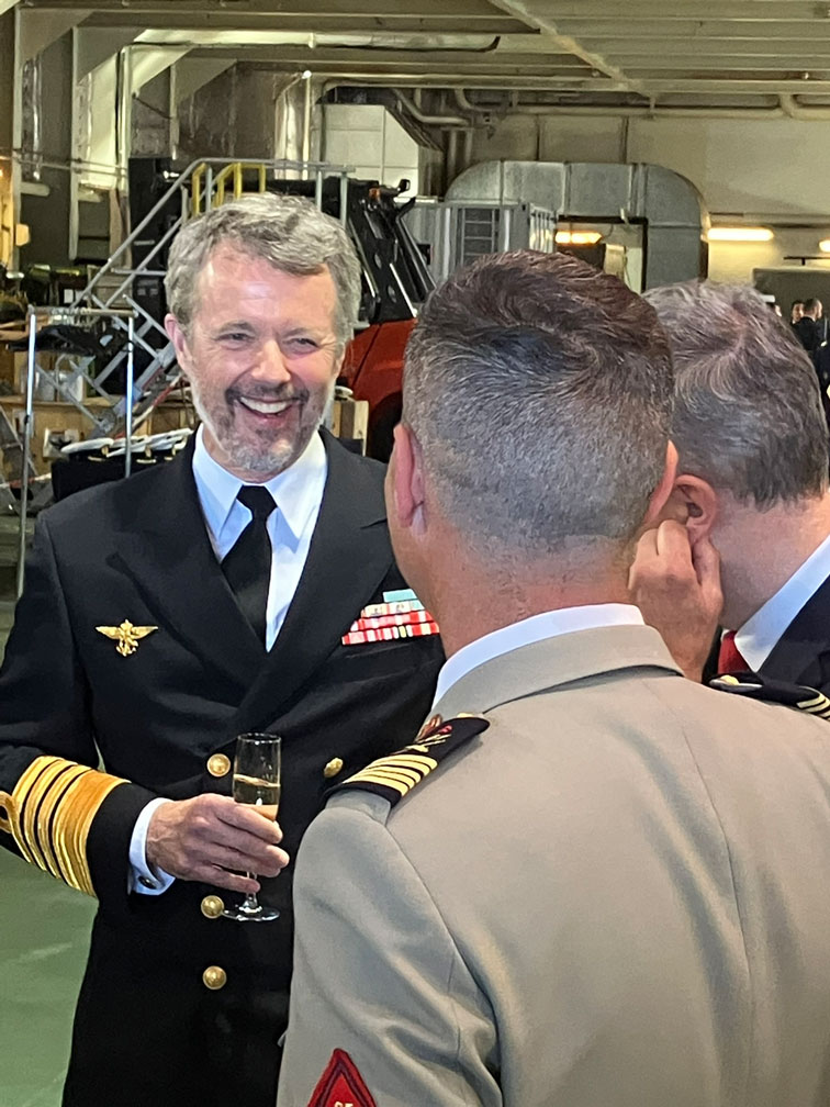 C’était le 30 juin 2026. Le porte helicoptères de la mirine francaise du type Mistral, un navire de 200 m de long portant une vingtaine d’helicoptères d’attaque et de surveillance était de passage dans le port de Copenhague. Parmi les invités: le roi Frederik X danois. Ecoutez ce qu’il nous dit en francais.